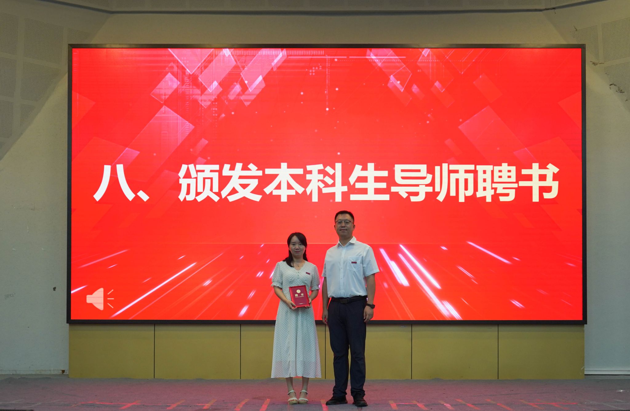 吴冬雁副院长、符洪涛副院长和范宁副院长为本科生导师及寝室导师代表王国波、陈怡冉、潘晓娇老师颁发聘书。