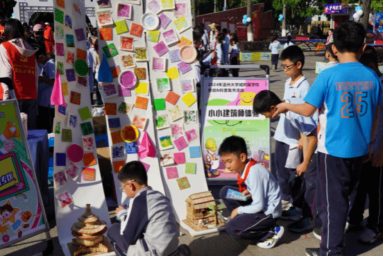摊位前挤满了小朋友,小朋友们七嘴八舌地讨论着。小小建筑师研学团队的学生们从最基本的结构稳固性入手,由浅入深、循序渐进地讲解着每一个小房子内部的奥秘。瞧,从校园到操场遍地是学生实践体验的身影。这项具有javhd