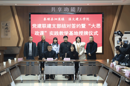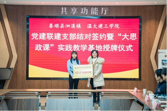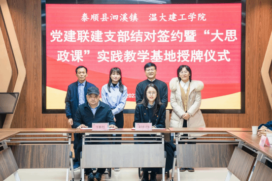 两个本科生党支部同时与最美廊桥北涧桥、溪东桥所在地,泰顺县泗溪镇下桥村、白粉墙村党支部签订了党建联建支部结对协议书,并在泰顺廊桥文化园设立“大思政课”实践教学基地。