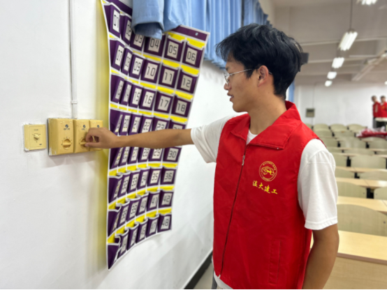 对每间教室的用电设立“灯长”制管理,通过组建志愿者团队,充分发挥青年党员、团员的先锋模范带头作用,让红马甲摇身一变成为“灯长”,带动周围同学共同养成随手关灯的好习惯,让绿色发展和节能减排观念深入人心。