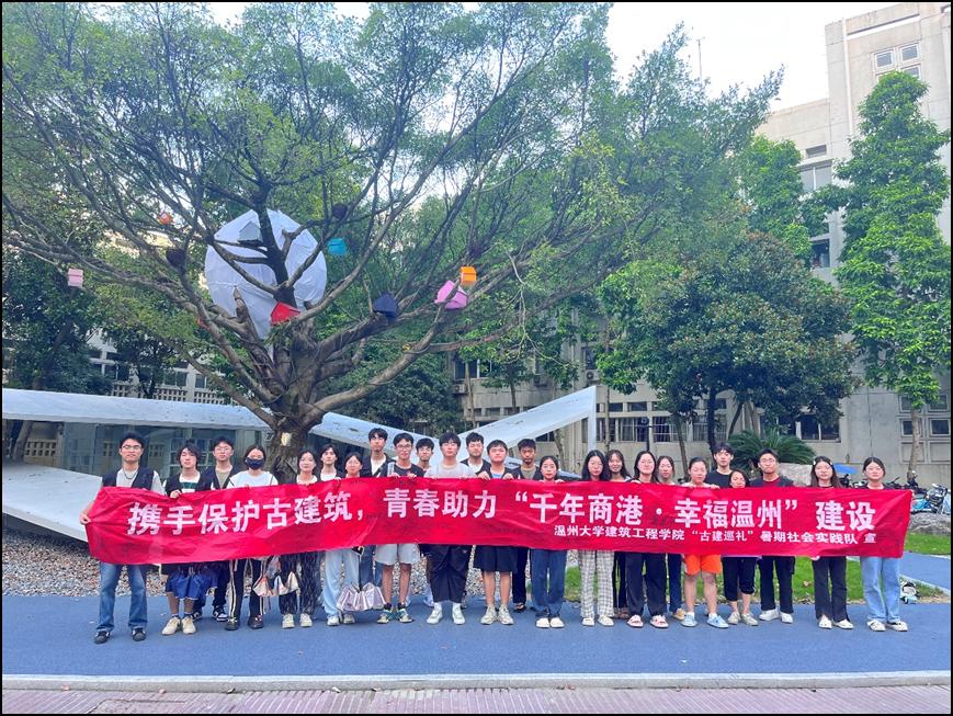 古建巡礼实践队是一支探访古建筑、致力美丽乡村建设的队伍。8年来,这支队伍走过永嘉楠溪江畔的古建筑群,泰顺泗溪的古廊桥,苍南的矾山古镇;去过瓯海的梧田老街,瑞安曹村东岙文化礼堂,文成二源乡田驮村;也到访过瓯海的三垟湿地、山根村之一例。队员们在当地开展建筑测绘、建筑写生、模型制作、文创产品设计以及其他相关保护研究工作,贡献青春力量。