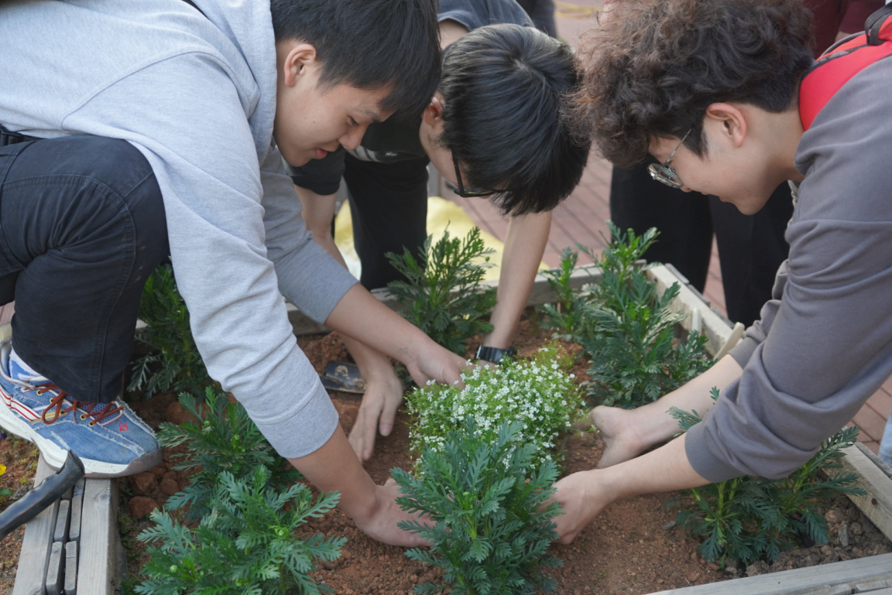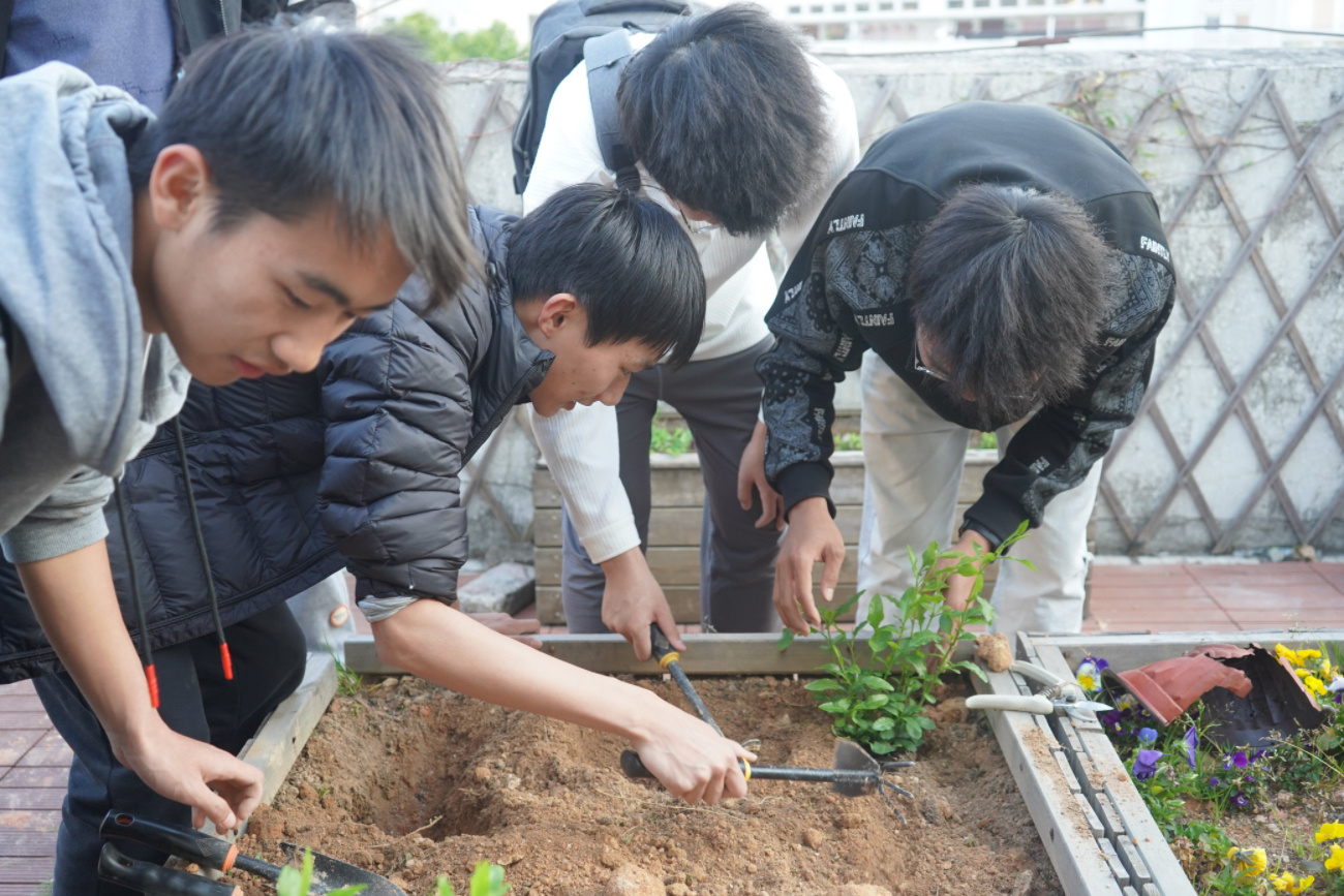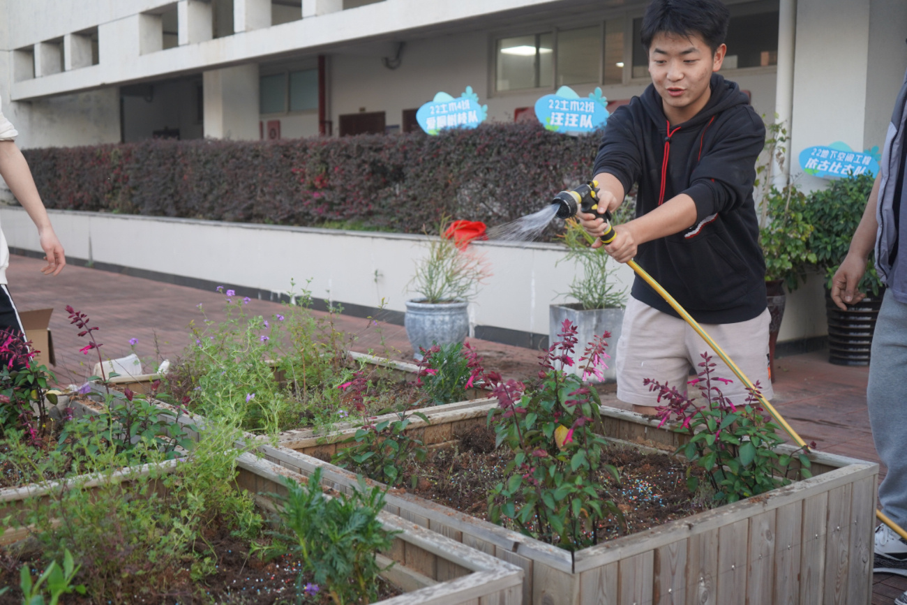 校园里聚集了很多同学,他们拿起铁锹、花洒在化身为“校园园艺师”,栽下了春季里最富有活力的幼苗。