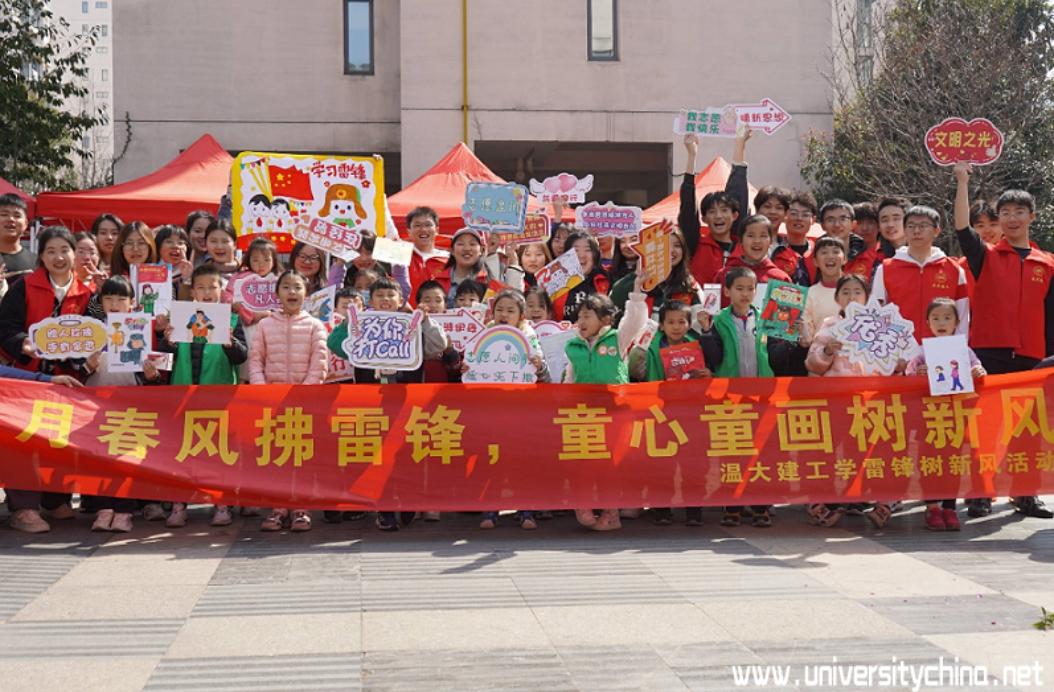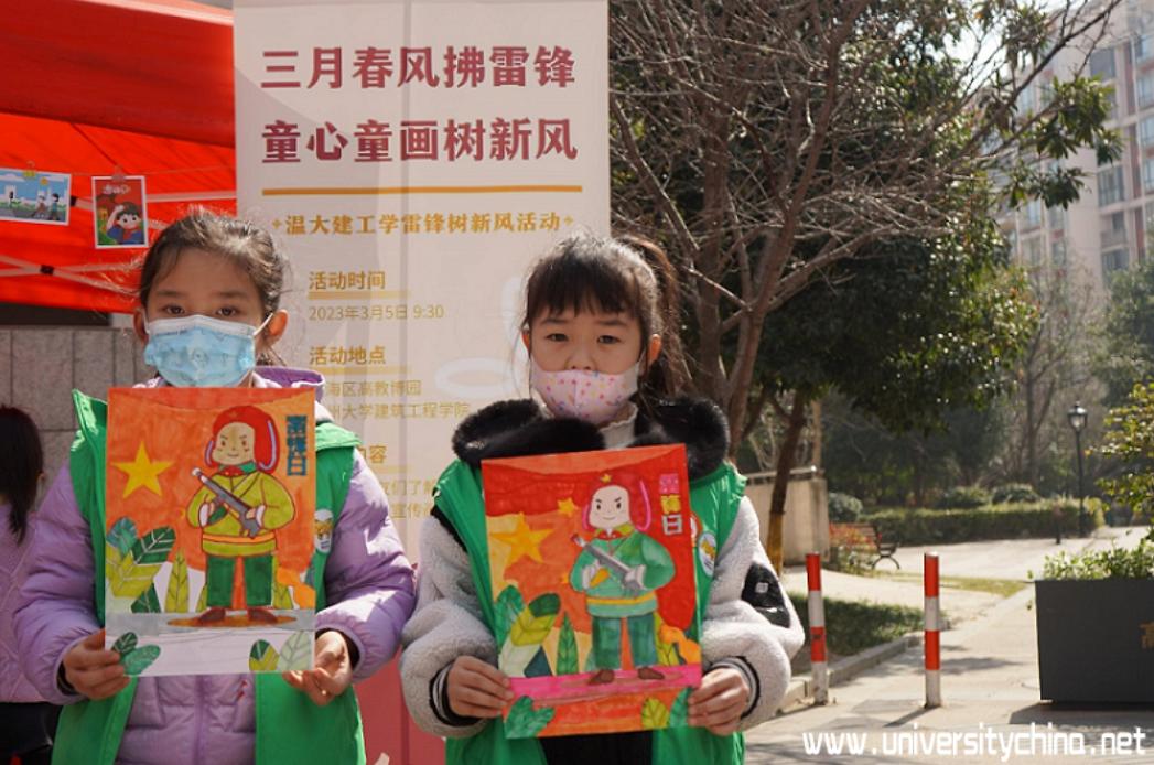 深入温州市瓯海区高教博园,与小学生和学生家长一同开展“雷锋日”主题活动。