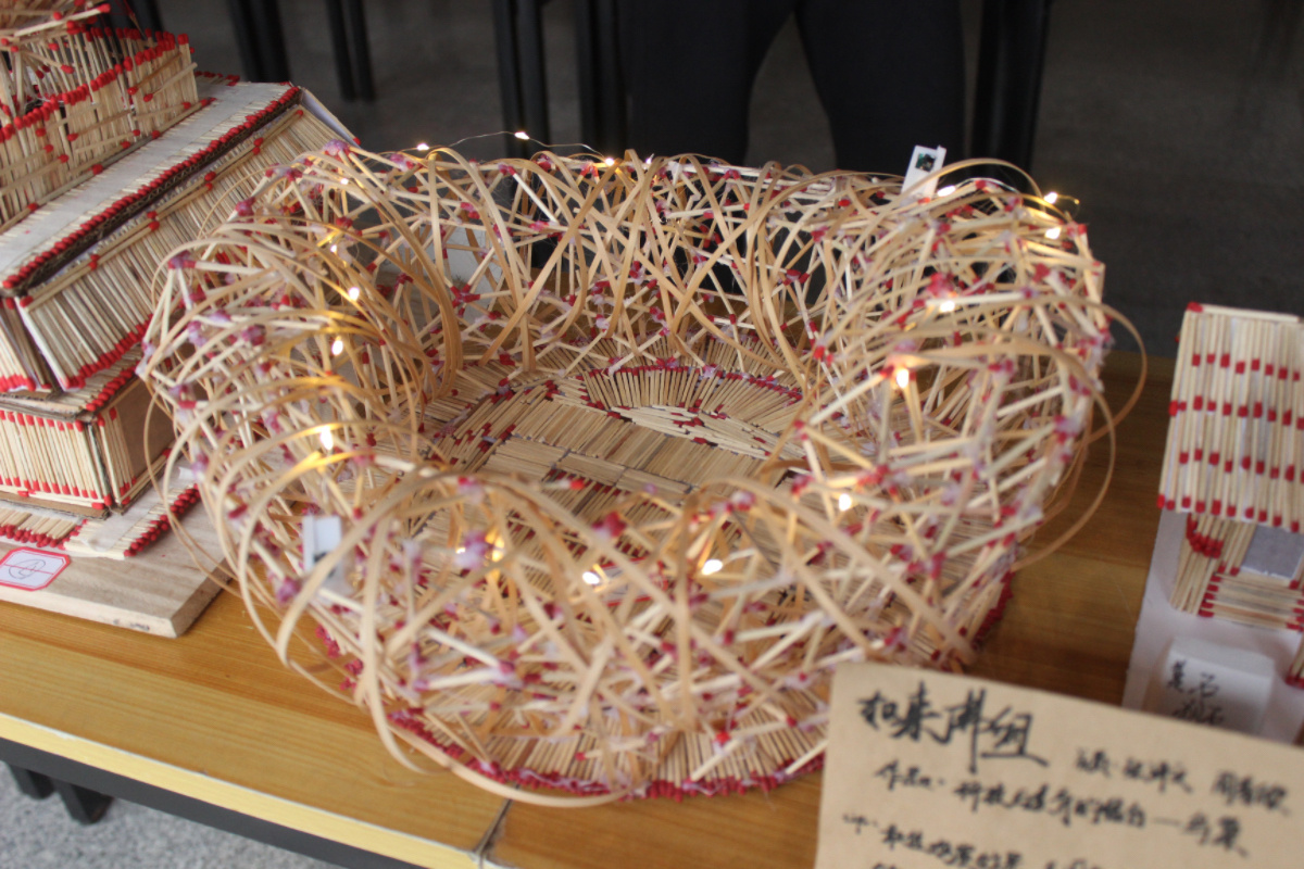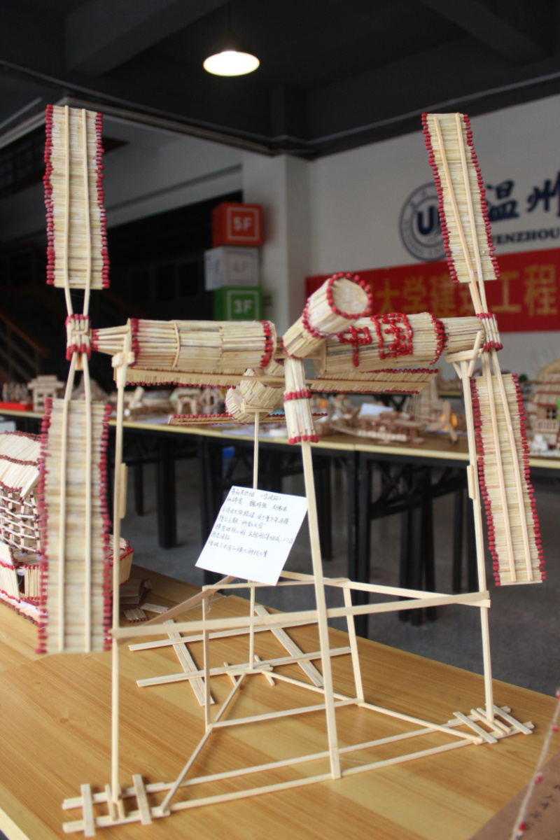 开展了一次以火柴为材料的创意作品展,这些作品全部都是用火柴搭建,凝聚了同学们的智慧和想象力,其中不仅有建筑模型,还有航天模型,体现了不同的主题,同时也将同学们的奇思妙想体现在作品当中。