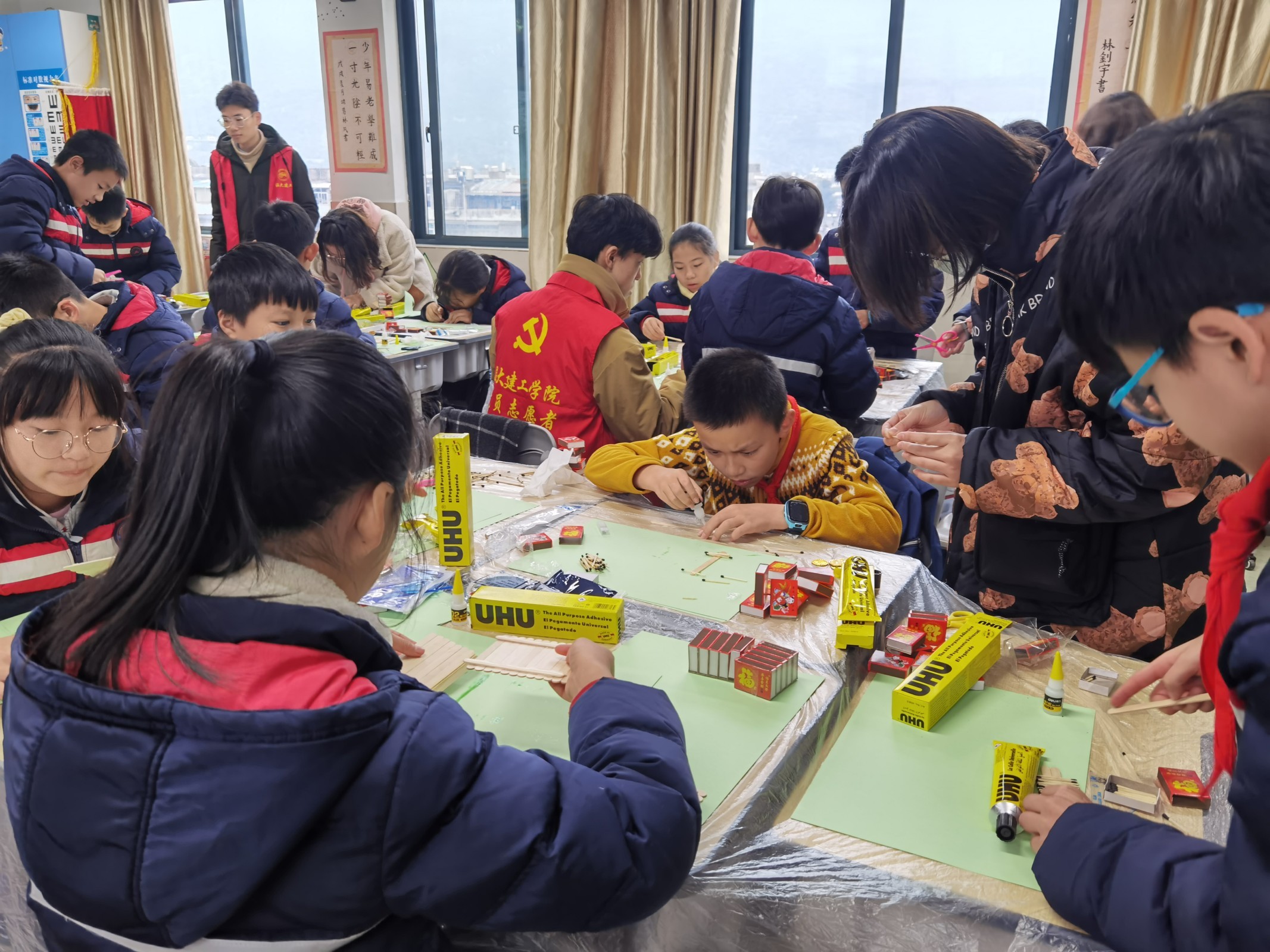 城附属学校小学生参与火柴艺术制作。