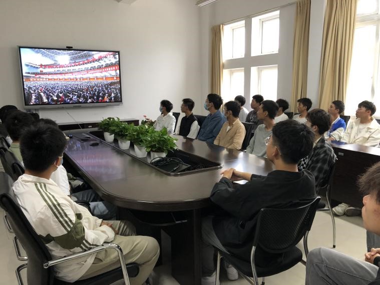 师生党员集中收看党的二十大开幕会,聆听习近平总书记代表第十九届中央委员会向党的二十大作报告。