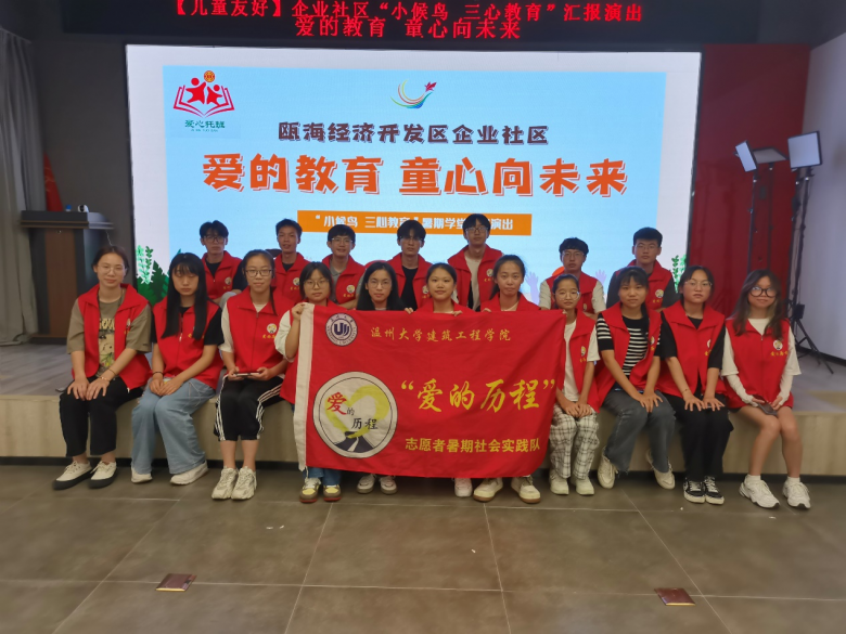 “爱的历程”实践队以“陪伴老人,呵护孩子”为出发点,分为两个方向助力“爱心托班”和“新青年下乡”,通过慈善支教、科学调研等方式激励人们投入到关爱新居民子女的活动中来。