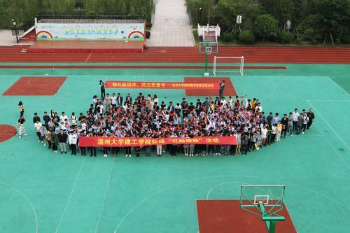 最后两百多名小学生和一百来名大学生、研究生一起来到操场,摆成了一艘大红船的造型,每位同学在“大船”中挥舞着手上的小红旗,带着“红船精神”扬帆启航。