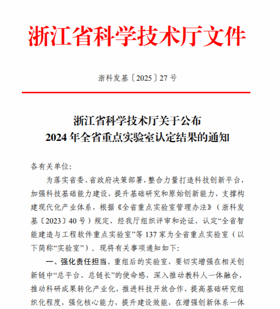 近日,浙江省科学技术厅公布了《关于2024年全省重点实验室认定结果的通知》(浙科发基〔2025〕27号),由javhd