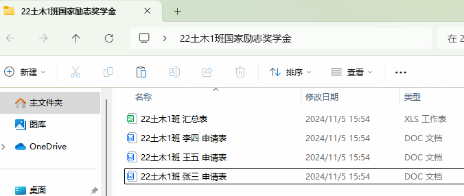 班级同学根据通知要求向班级生活委员提出申请,各班生活委员于10月26日前审核,并提交附件4(电子版和纸质版,申请理由需要填写),附件5(电子版,班级所有申请同学在一张表上);纸质版材料交至7A205王赛梦老师办公室,电子版材料发送至邮箱3998871347@qq.com,附件及邮件主题命名为“班级+国家励志奖学金”。