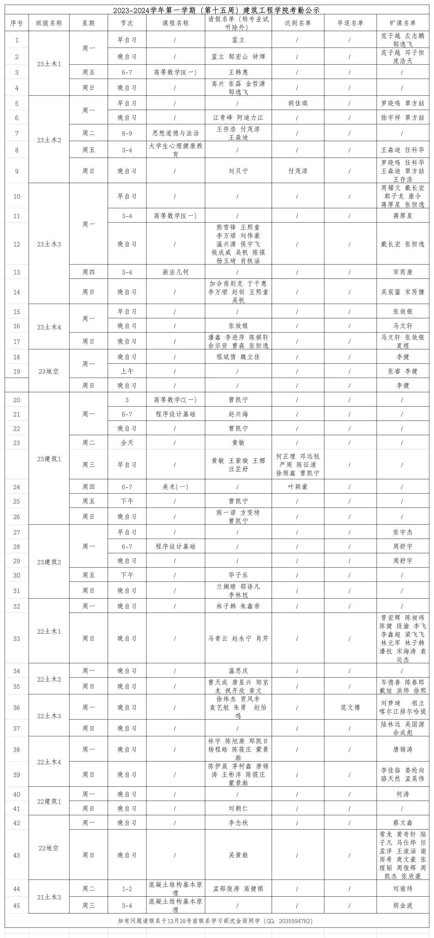 2023-2024学年第一学期(第十五周)javhd 考勤公示