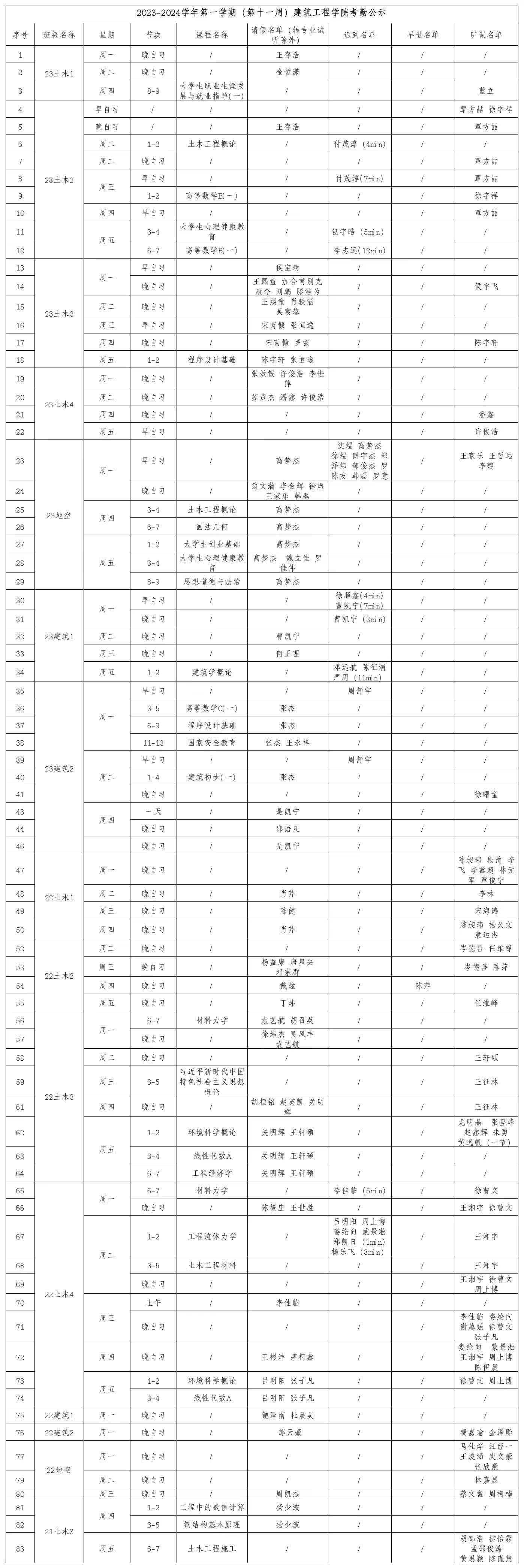 2023-2024学年第一学期(第十一周)javhd 考勤公示