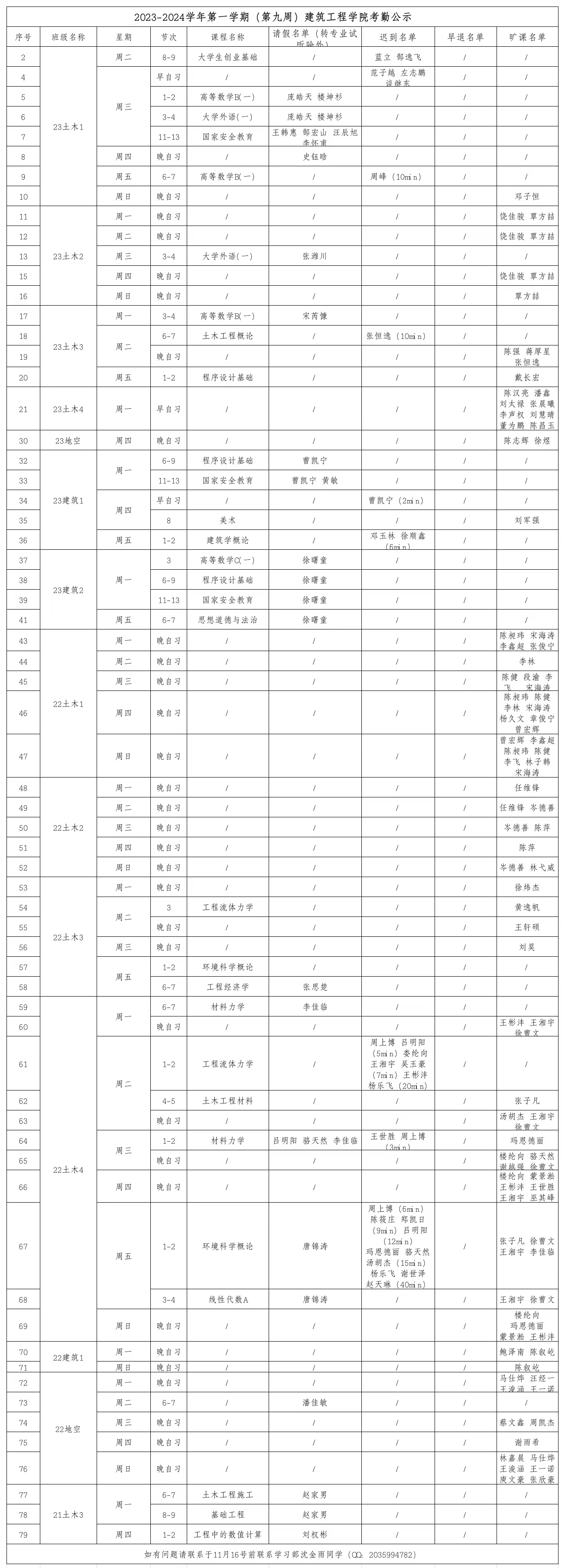 2023-2024学年第一学期(第九周)javhd 考勤公示