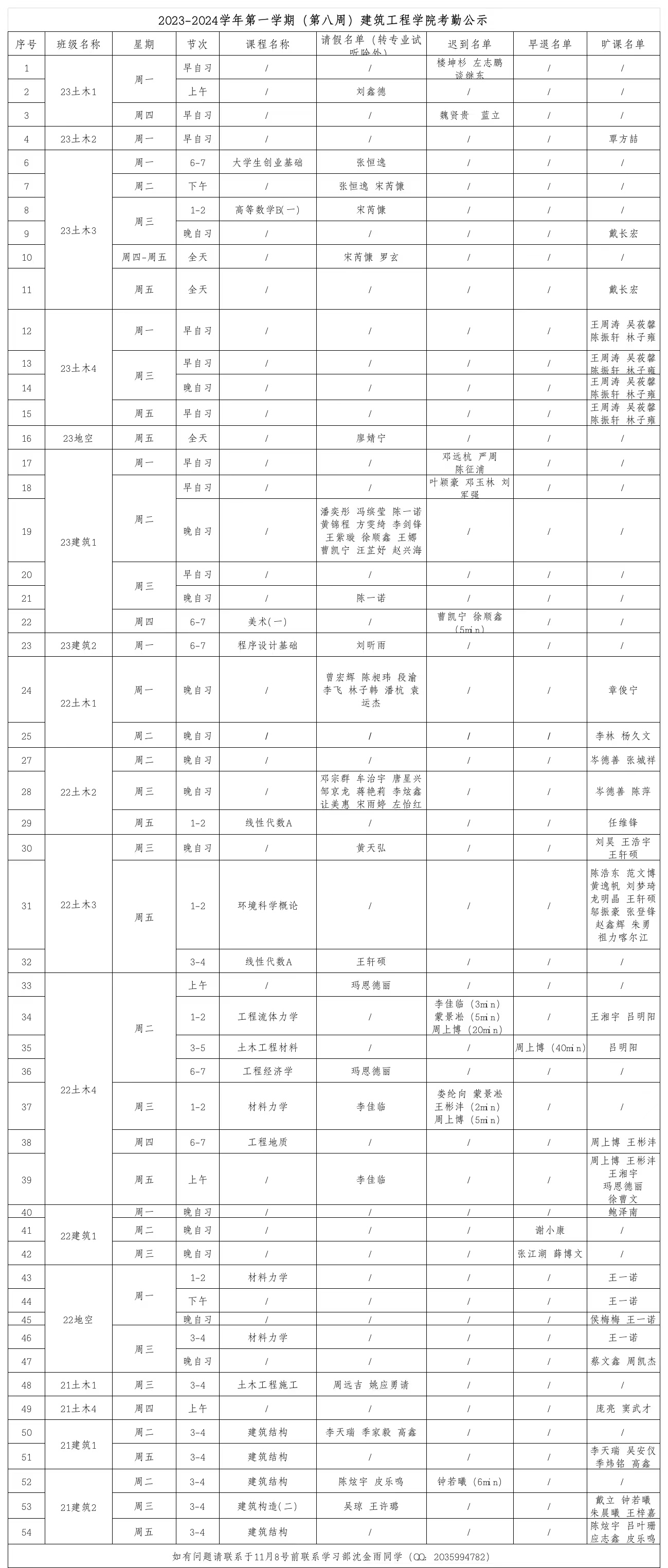 2023-2024学年第一学期(第八周)javhd 考勤公示