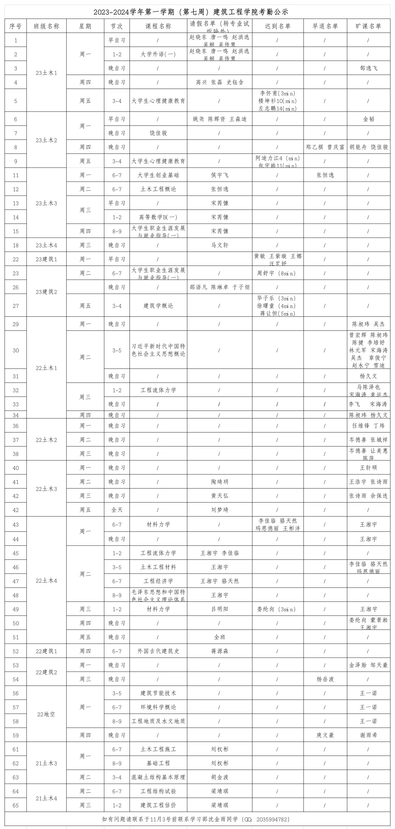 2023-2024学年第一学期(第七周)javhd 考勤公示