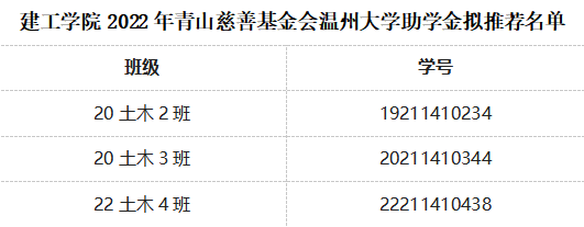 根据《关于申请2022年青山慈善基金会javhd 助学金的通知》的文件精神,经过学院通知、学生申请、学院组织评审程序,现将javhd 2022年青山慈善助学金拟推荐学生名单予以公示。