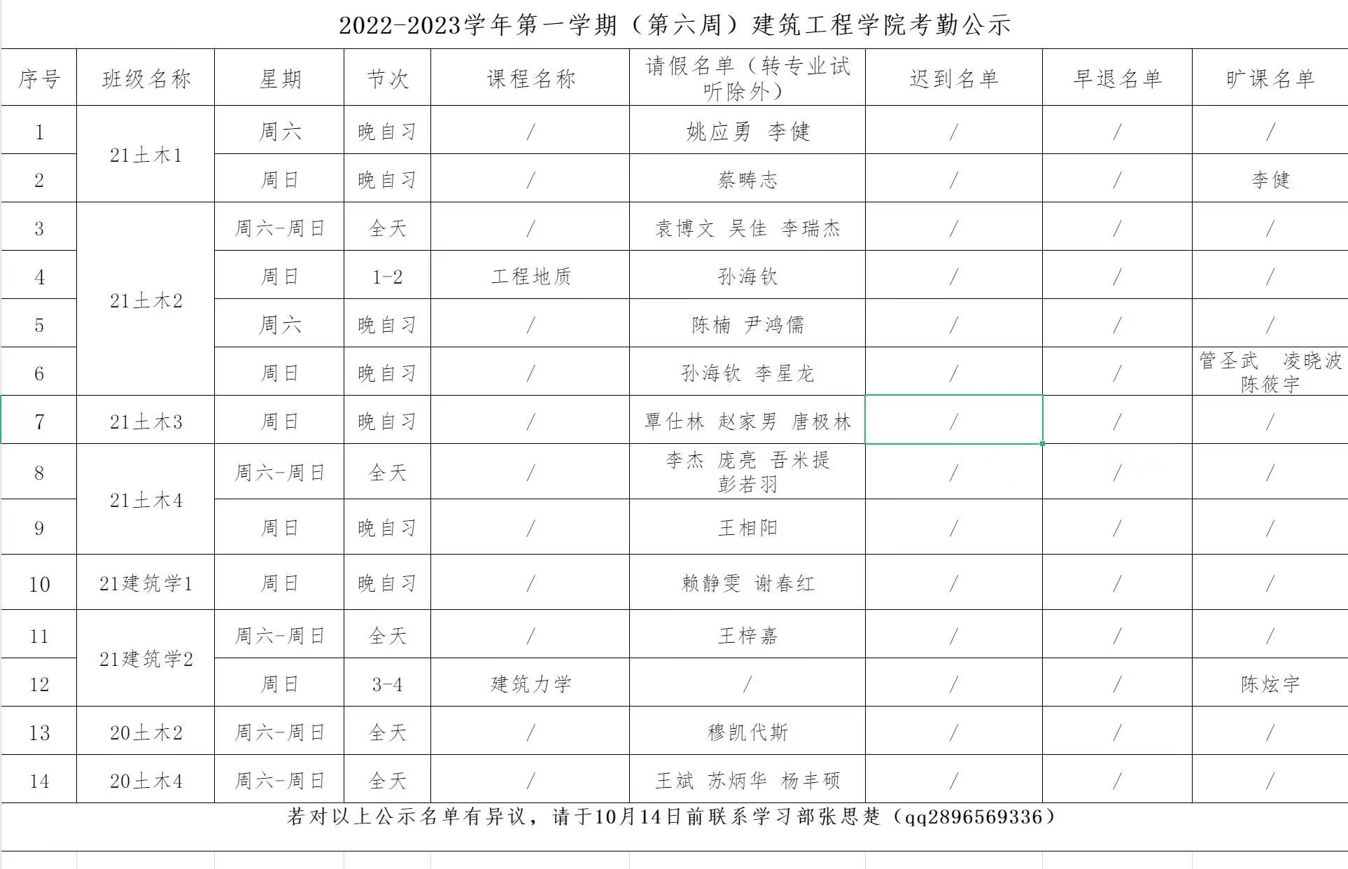 2022-2023学年第一学期(第六周)javhd 考勤公示