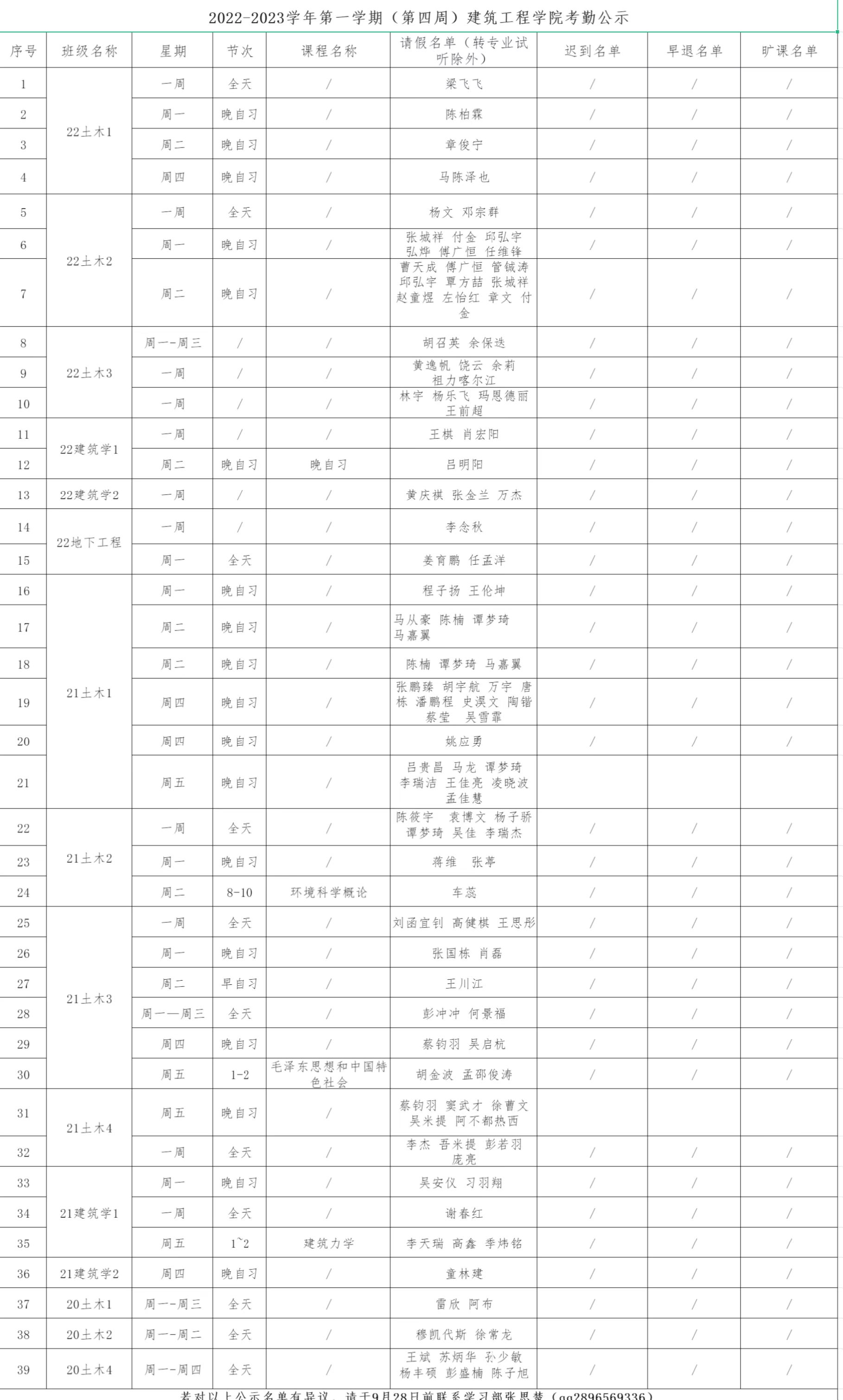 2022-2023学年第一学期(第四周)javhd 考勤公示