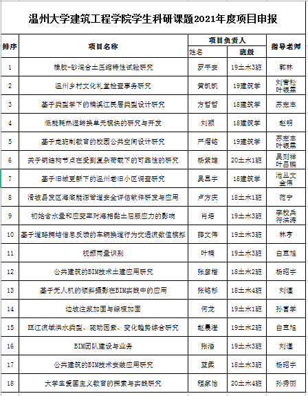 经学院专家评审,拟同意19土木3班罗平安同学的《橡胶-砂混合土压缩特性试验研究》等18项2021年学生科研课题立项。现将名单予以公布。