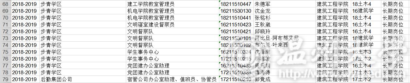 18-19学年勤工俭学名单