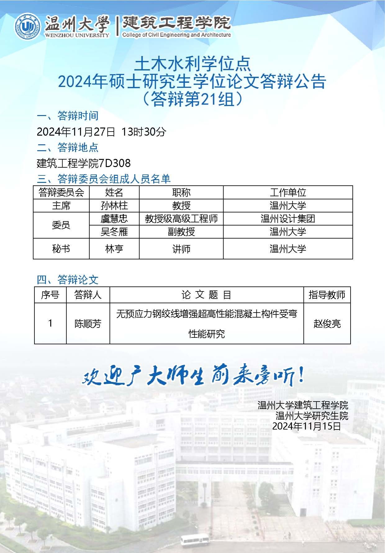 javhd 土木水利学位点2021级硕士研究生学位论文答辩公告(九)