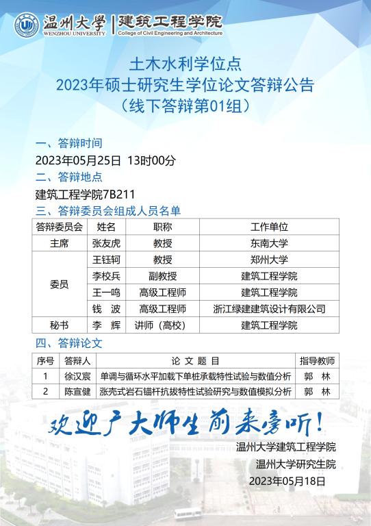 javhd 土木水利学位点2020级硕士研究生学位论文答辩公告(一)