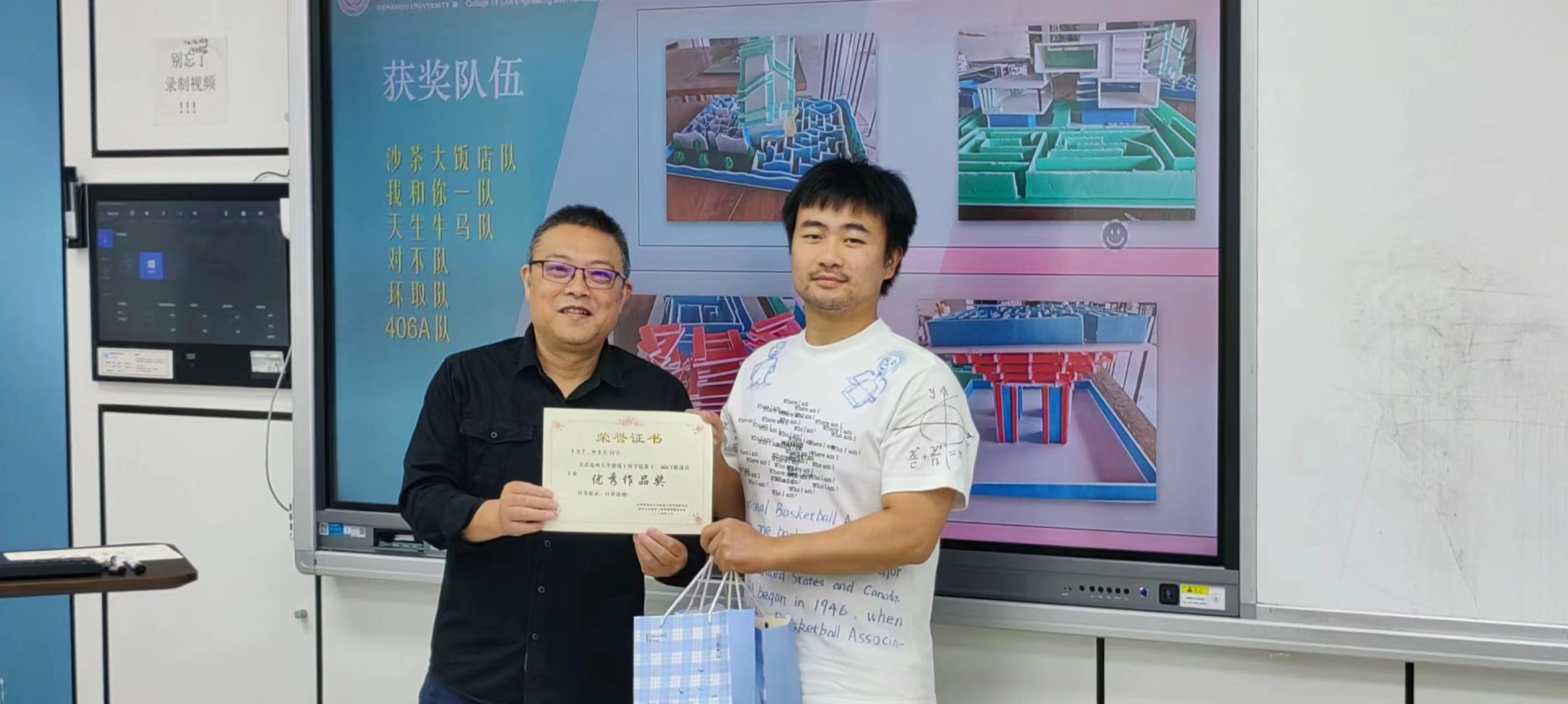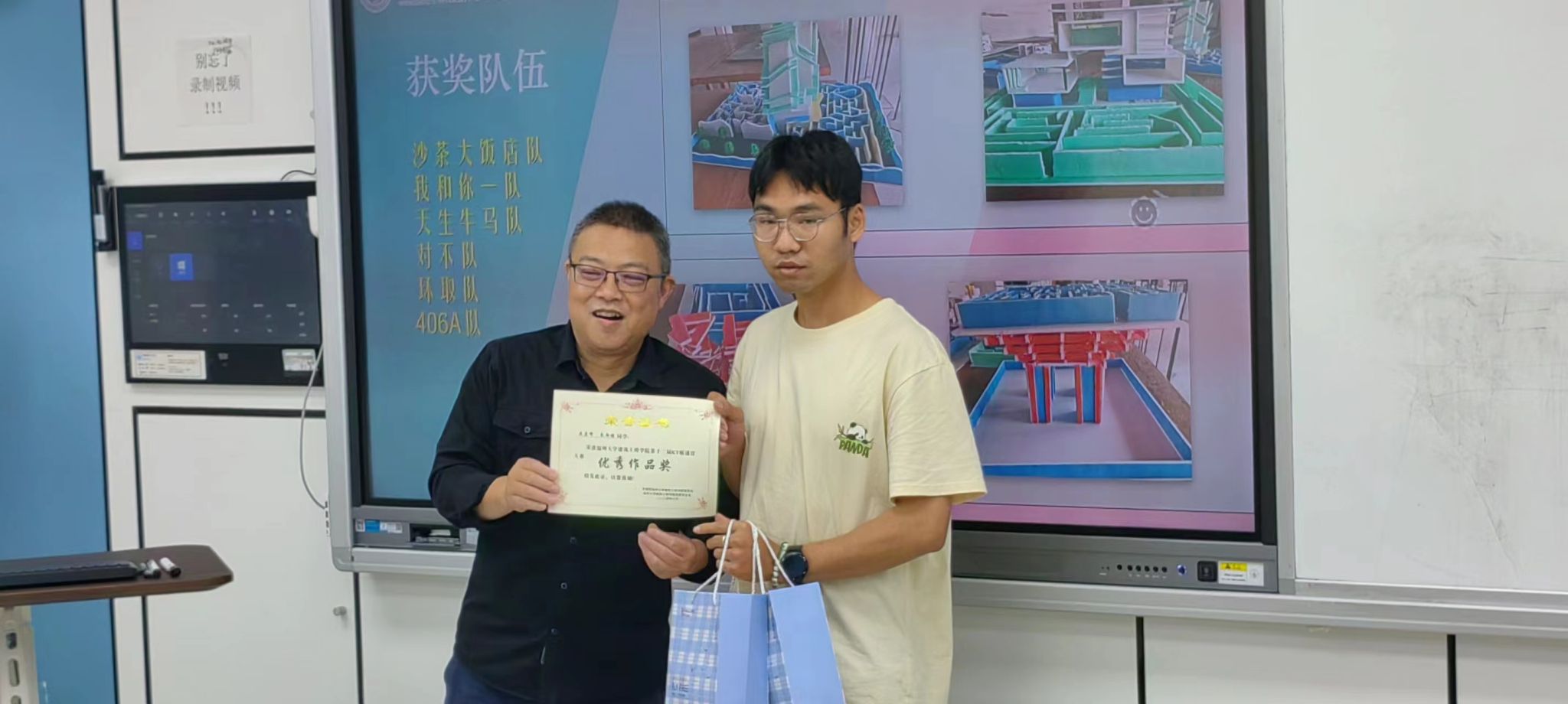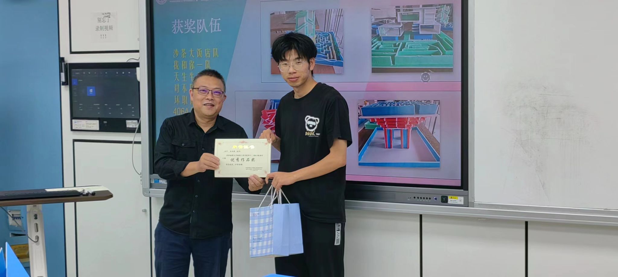 6月6日,造家协会于7D308教室开展第十二届KT板迷宫大赛作品展示与交流会,活动邀请刘谨老师参与评比。交流会采用“PPT讲解+作品展示”形式,各参赛小组以迷宫设计为切入点,用KT板深入探究迷宫的意义,以独特的思路创作展示优良的模型。刘谨老师为“优秀作品奖”获得者沙茶大饭店队、我和你一队、天生牛马队、对不队、环取队颁奖并合影留念。
