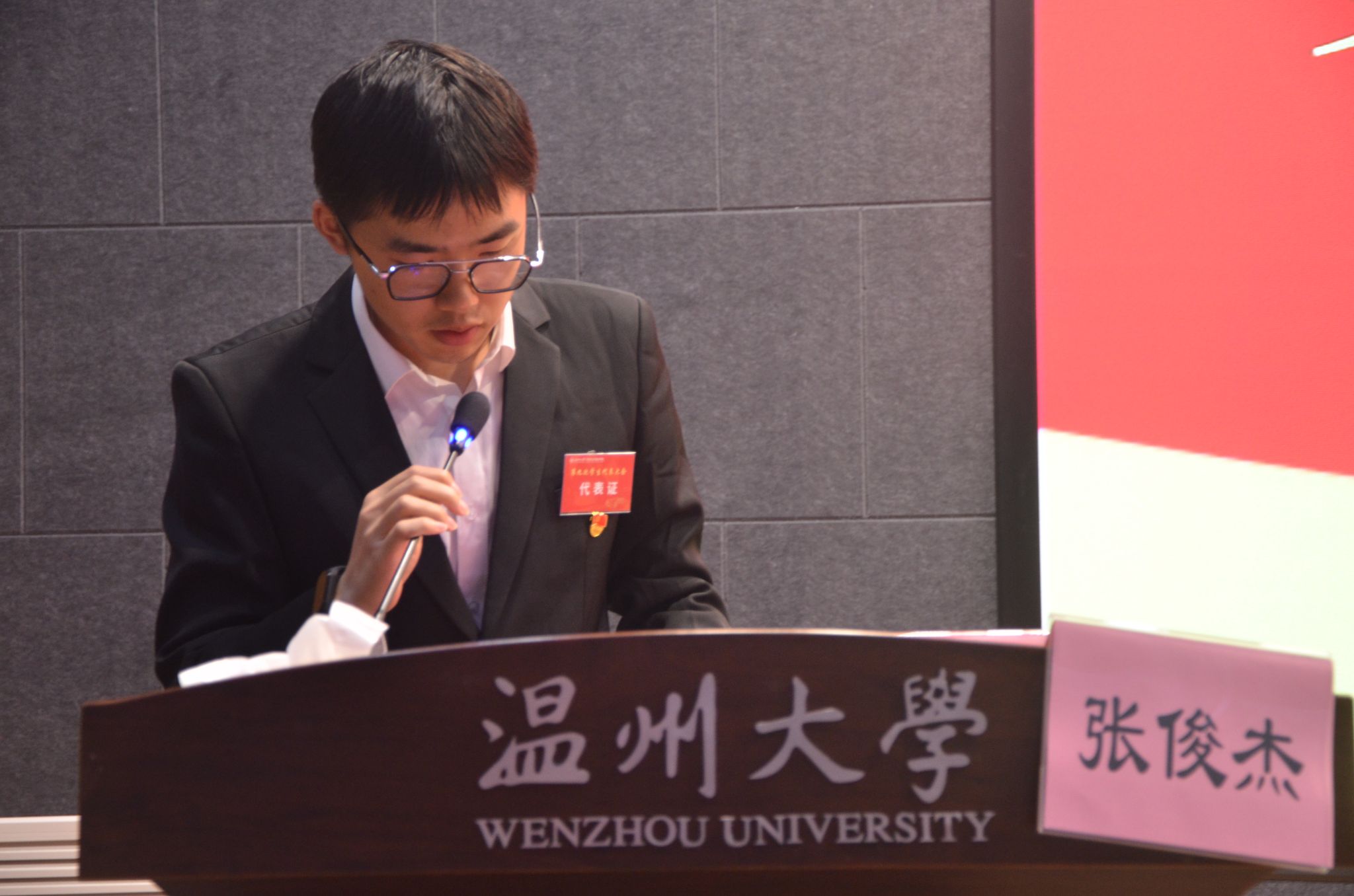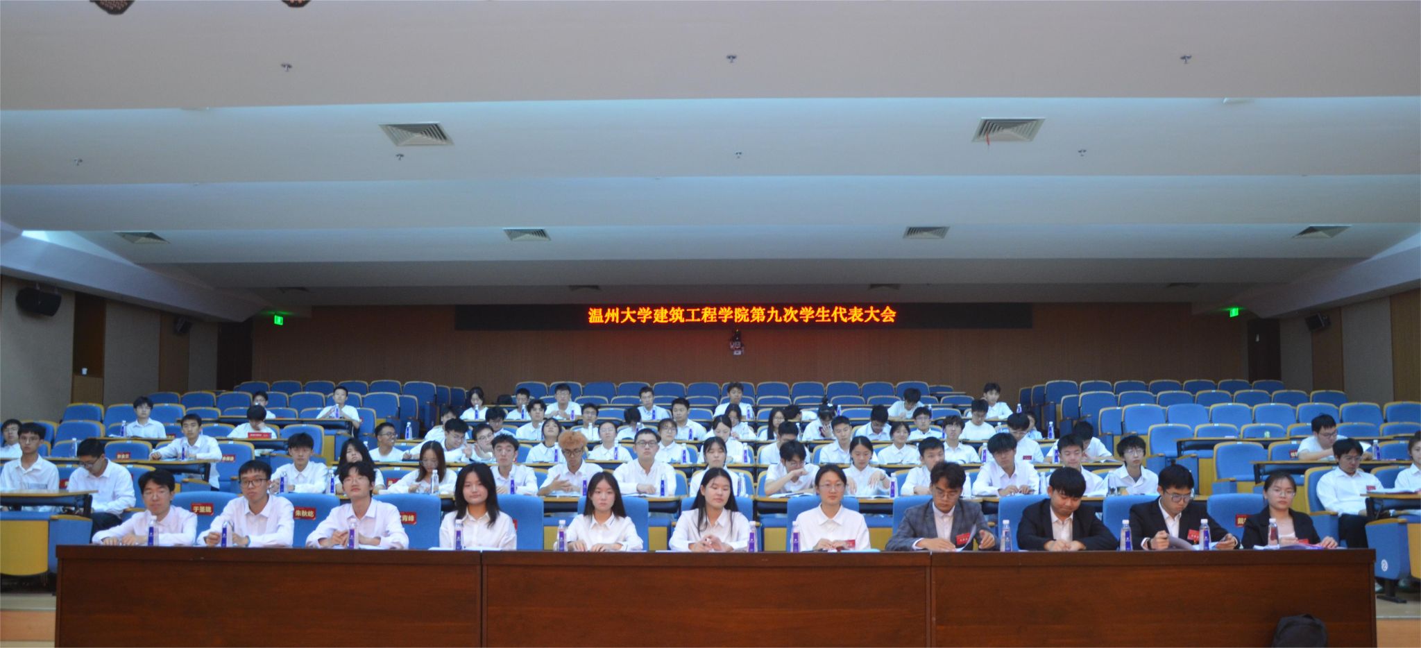 第九次学生代表大会于岩松堂步青厅召开。学院党委副书记王中对,学工办主任、团委书记郭瑞芬出席会议,82名学生代表参加会议。会议由团学指导老师朱宸希主持。