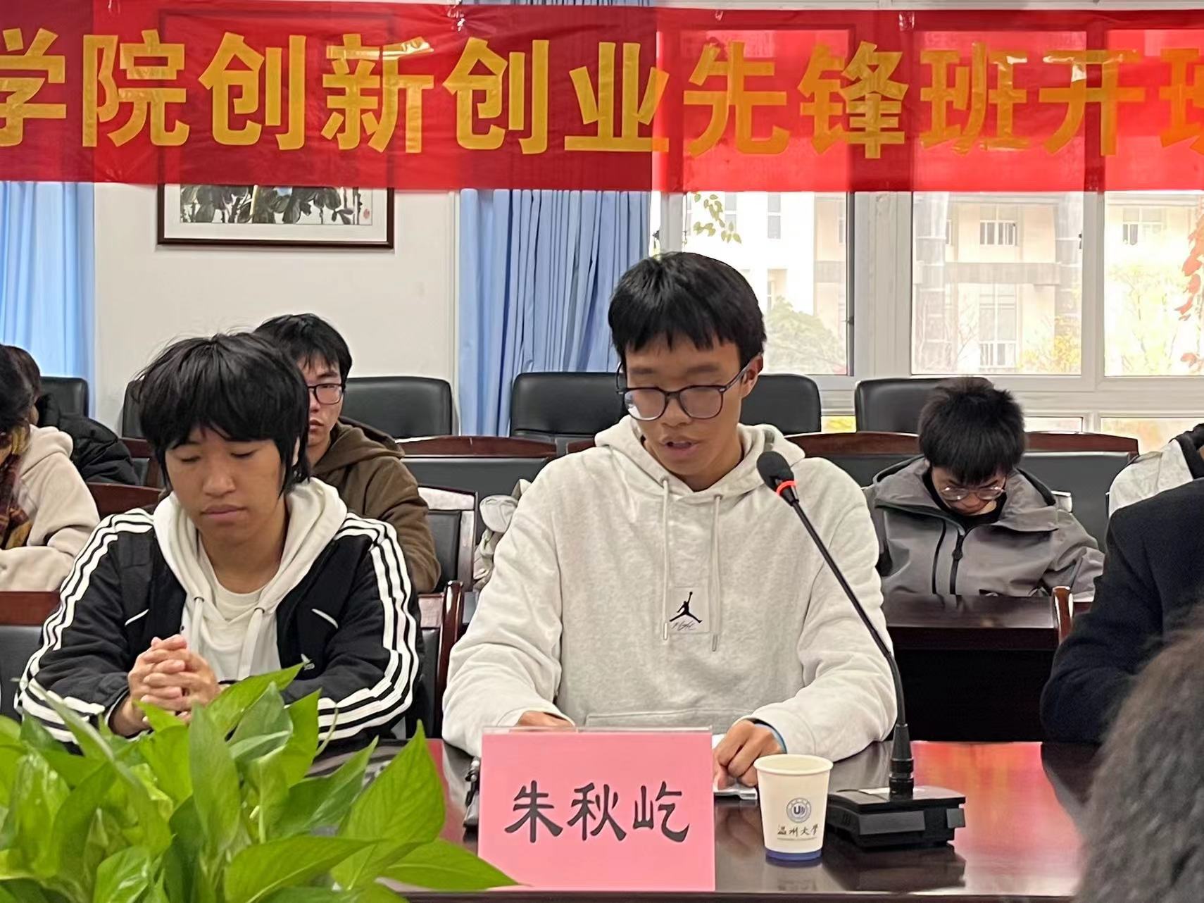 朱秋屹作为学生代表发言。他代表全体学生感谢学院搭建的学习交流平台,并表示同学们将以此为契机,认真学习,积极实践,丰富自身积累,提高创业素养。