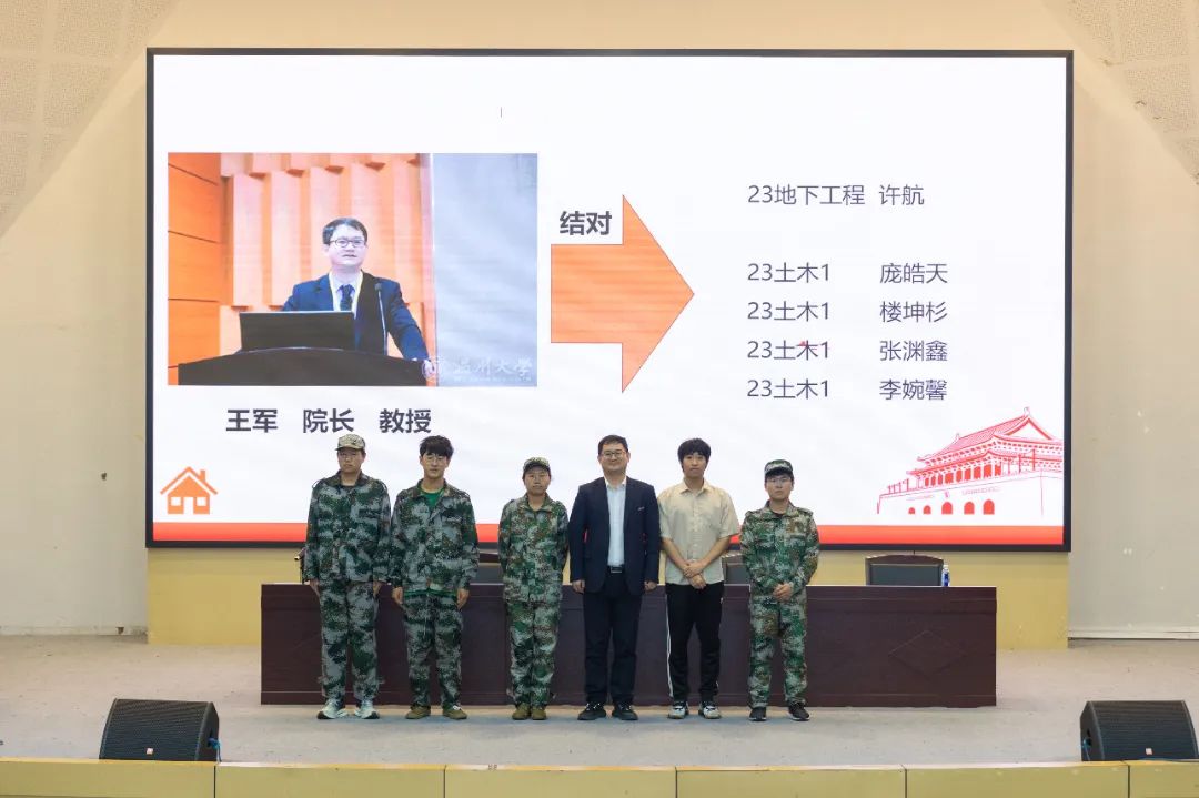 院长王军致辞。他对2023级新生表示热烈的欢迎,围绕学院专业建设、人才培养、科学研究、师资力量等方面简要介绍学院的建设发展情况。他结合新时代建筑、规划、交通、水利行业的发展特点和就业前景,引导同学们思考“要成为什么样的人”,鼓励新生以理想为帆,矢志奋斗。