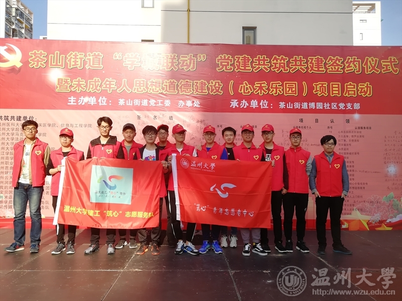 “筑心”青协志愿者在辅导员潘莉莉和刘明媚老师的带领下,前往高教·博园社区参加茶山街道主办的“学城联动”签约仪式暨未成年人思想道德建设(心禾乐园)项目启动仪式。