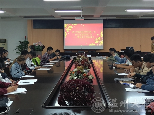 团学组织部于10月15日18:30在7A201举行了2017学年第一次新生干部培训。出席本次会议的嘉宾有党总支书副书记王壮,以及17级新生干部和17级各班班委。