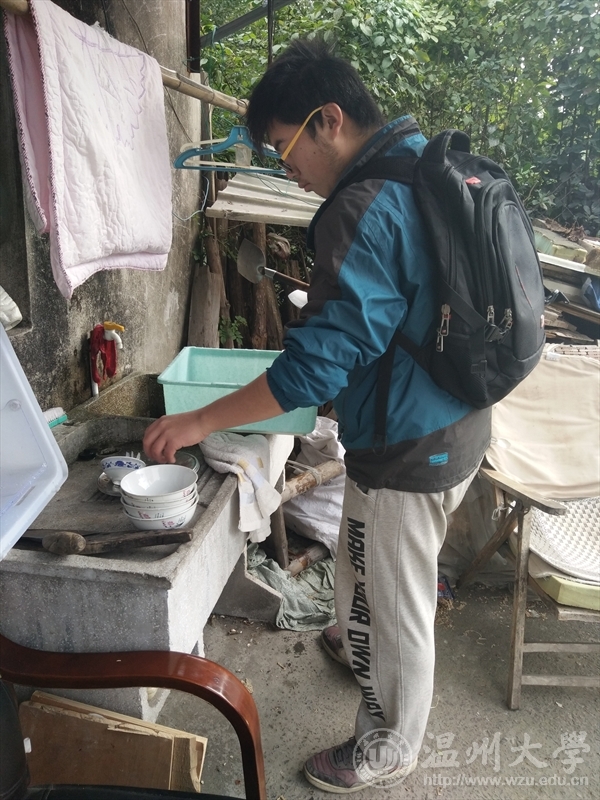 青年志愿服务中心的组织带领下,大一三名志愿者前往温州市丽岙村林正堂老人家中义务志愿服务。