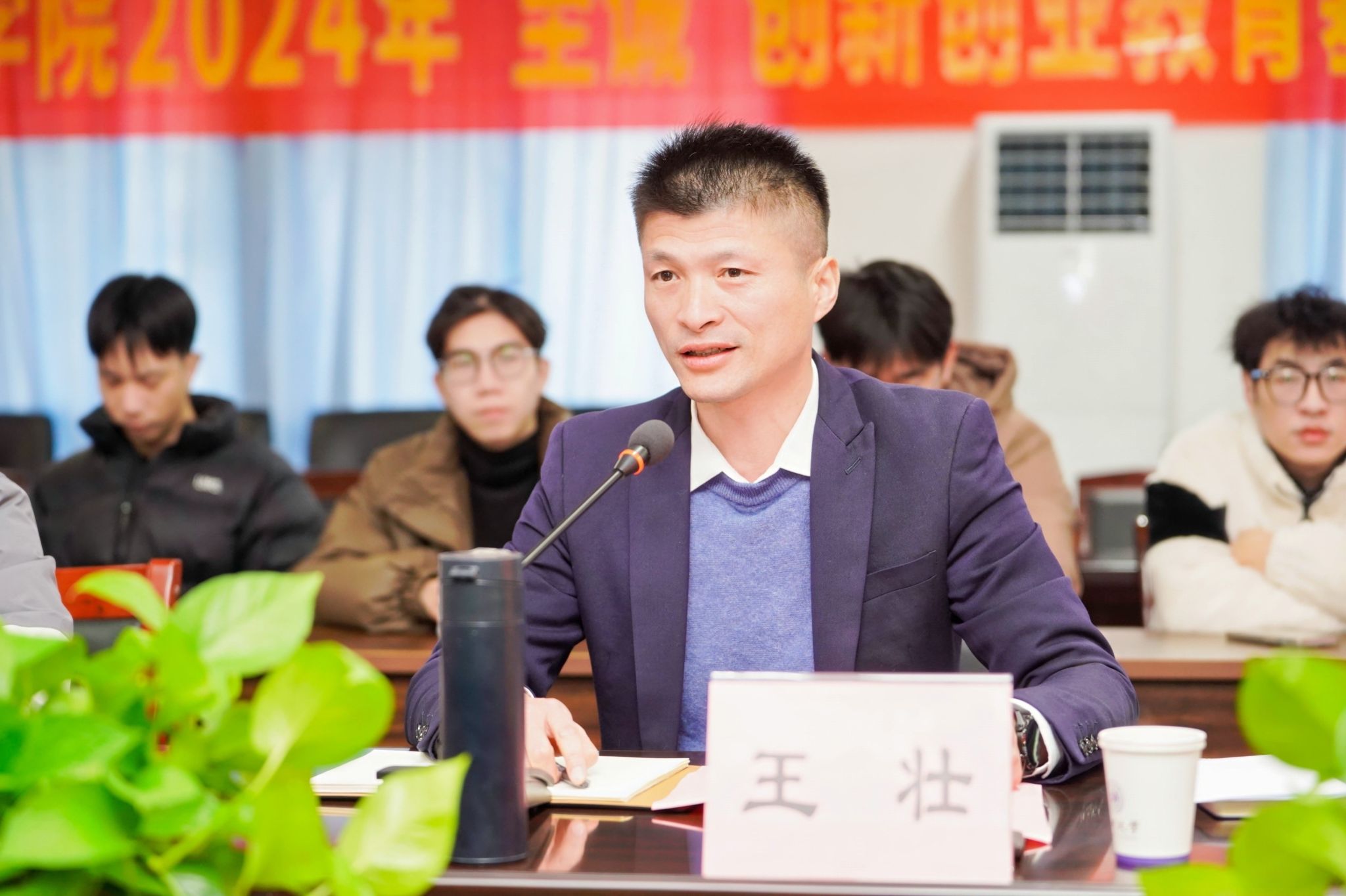院党委书记王壮致辞。他向同学们介绍陈建德校优夫妇设立在“至诚”创新创业教育基金的初衷,并高度赞扬了陈建德先生心系建工、慷慨助学的善举。紧接着,他对获获奖提出了殷切希望。第一,希望同学们用好“至诚”创新创业教育基金,要继续创新创业上下功夫,争取产出更多的创新创业成果;第二,希望同学们在创新创业活动中收获成长,提升能力能力,积极实践探索大学生创新创业的理念与方法;第三,希望同学们懂感恩、会创新,不辜负陈建德校友的良苦用心,继续深耕创新创业领域,成为勇担责任的时代好青年。