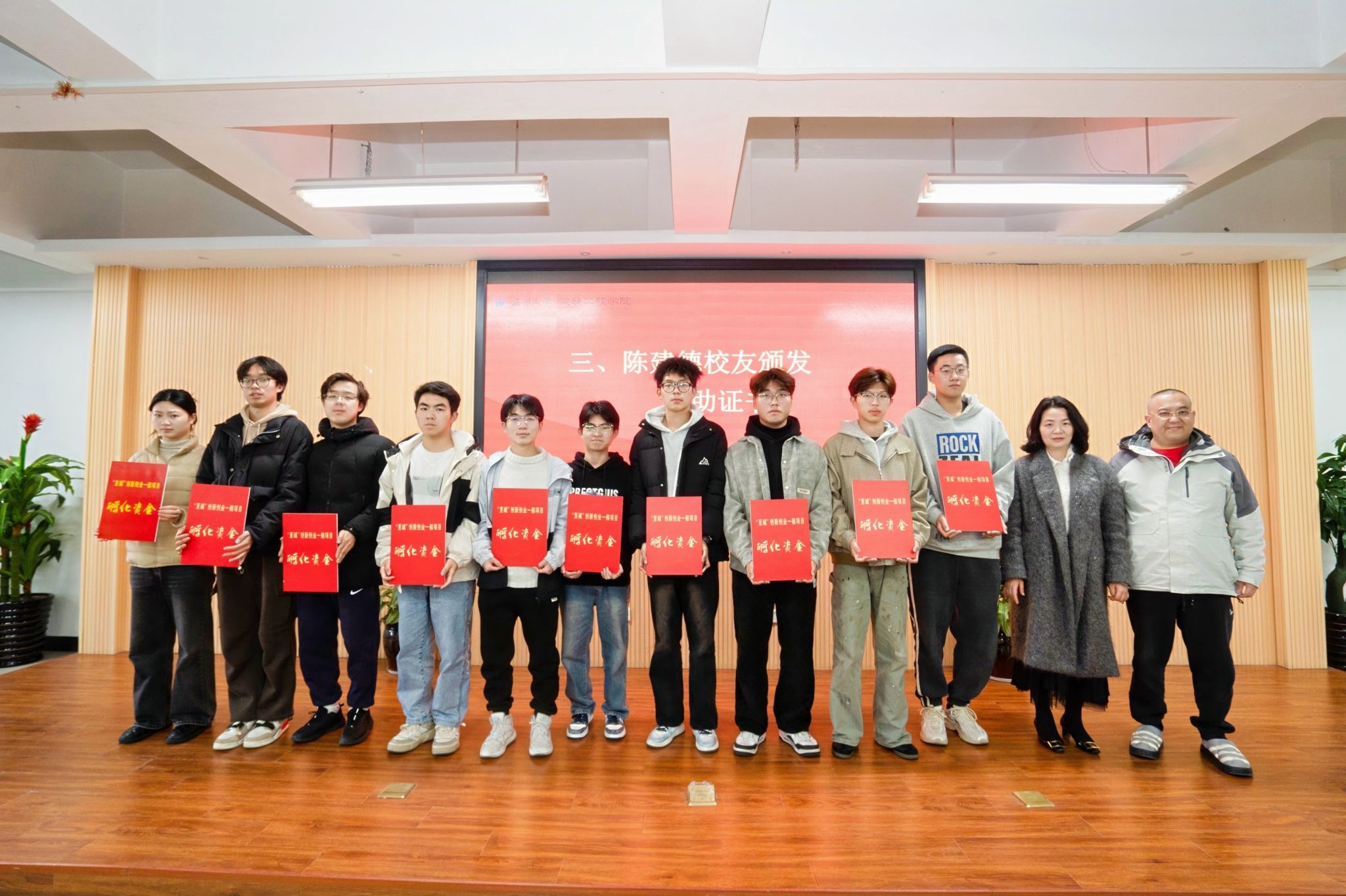 在7A201会议室举行2024年“至诚”创新创业教育基金颁发仪式,浙江至诚建设有限公司董事长、97级校友陈建德及其爱人董春华、院党委书记王壮、学院党委副书记陈铎等出席。仪式由院党委副书记陈铎主持。